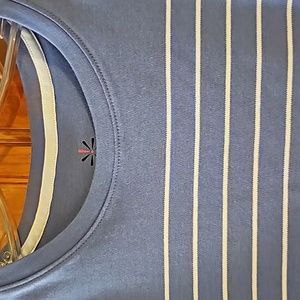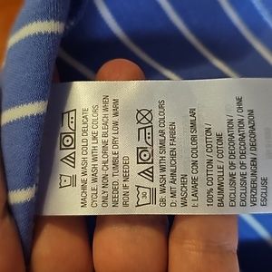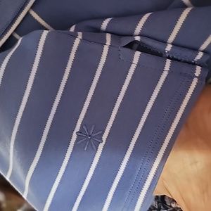 NWOT Isaac Mizrahi shirt, blue with white stripes, short sleeve. 100% cotton, medium, p2p 20in, length 26.5in, sl flare to bottom with small side slits. See photos.