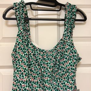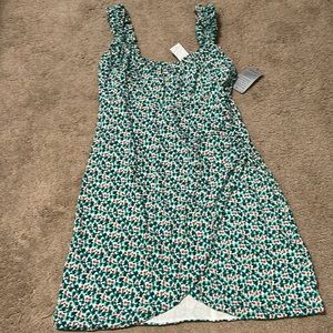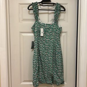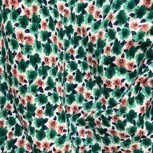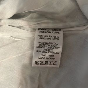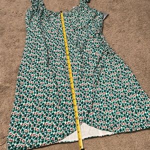 Gorgeous dress. Green pink purple and white. Some buttons down side, zipper back, and pretty strap detail. Has light under layer as well