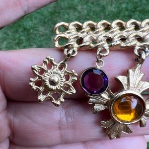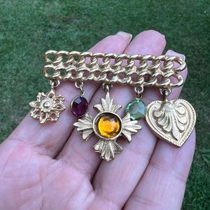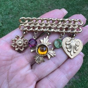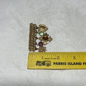 Vintage Gold-tone Costume Dangle Charm Chain Bar Brooch