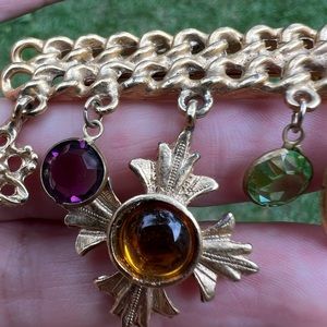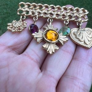 • 5 Dangle charms heart, cross bezel set glass