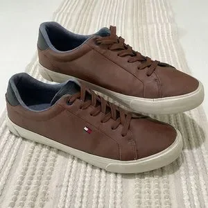Tommy Hilfiger beautiful brown leather sneakers. Men’s 10. Like new condition.