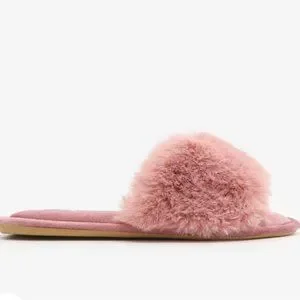 Pink faux fur slide slippers. NWT. Memory foam. Slip grip outsole. Fits size 7,7.5 and 8 woman’s.