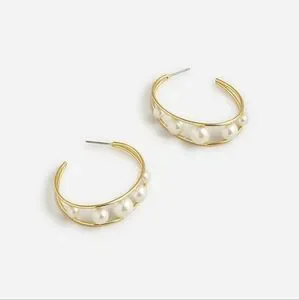 Not your classic pearls. . .in the best way. These double-hoop earrings with pearls nestled in the middle will make every summer outfit even cooler. Want to keep your jewelry looking like new? We recommend removing it before showering or exercise, and putting it on after applying hair products or perfume. To clean your pieces, polish them with a soft, dry cloth - and when not wearing, store them in a pouch or jewelry case.