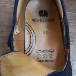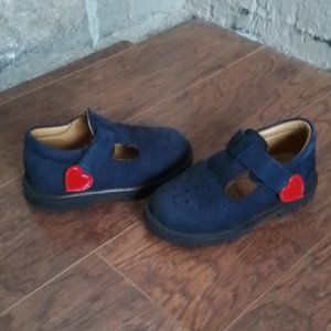 Adorable Elefanten girls blue suede mary janes with red patent leather heart strap and cut out detail. Strong velcro closure. In excellent condition.