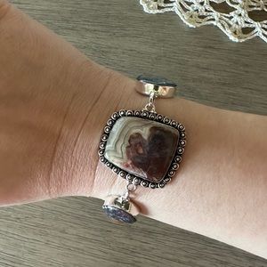 0327 Crazy Lace Agate Biwa Pearl Bracelet Handmade Silver Gemstone Jewelry