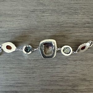 Sterling Silver overlay, copper base. Artisan hand crafted. Each gorgeous bohemian statement piece is comprised of a mix of simulated semi-precious stones, natural stones, Biwa pearls or shells. Antique patina finish. Vintage inspired designs. I hope you love this jewelry as much as I do. π¦ππβ¨