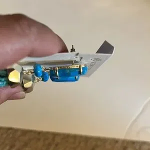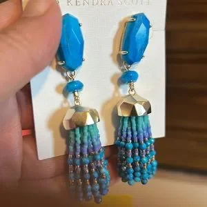 Blue purple and gold colors. Brand New Kendra Scott Dub Gold earrings never used originally priced at $150.Will be sending the box with the earrings.