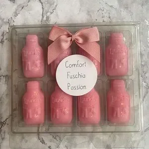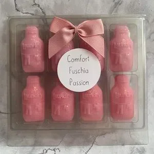 8 piece cute laundry bottle shaped wax melt gift set, pink glitter.