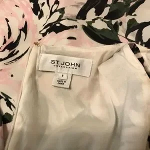 St. John Collection silk floral dress size 8 pink white green floral