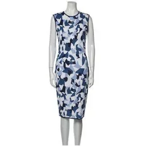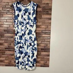 GIVENCHY Geometric Pencil Dress Blue Navy White Knit Stretch Size M Sleeveless