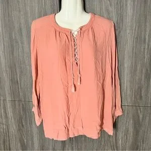 Madewell Lace Up Peasant Top in Dusty Rose color