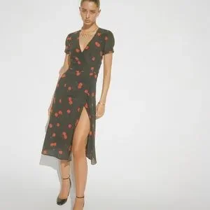 Réalisation Par The Teale Wrap Midi Dress in Wild Cherry NWT Sz XS