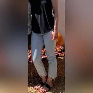 Super cute, light wash jeans with frayed, cropped hem