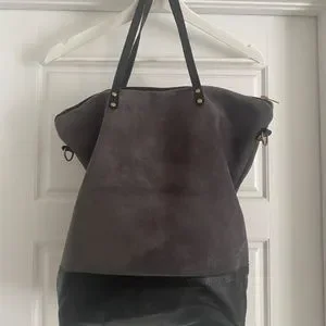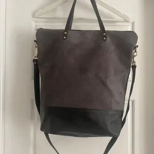 Suede Tote | Leather Tote | Women's Purse | Black & Grey