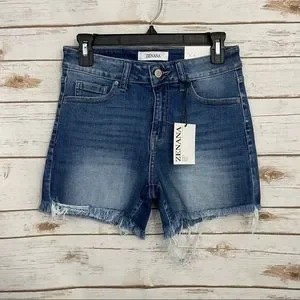 NWT Zenana Medium Wash Denim High Rise Raw Hem Shorts