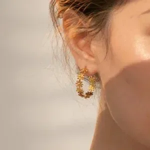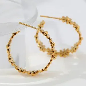 NEW 18K Gold Plated Daisy Flower Round Hoop Earrings