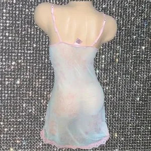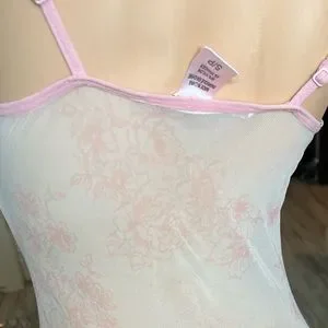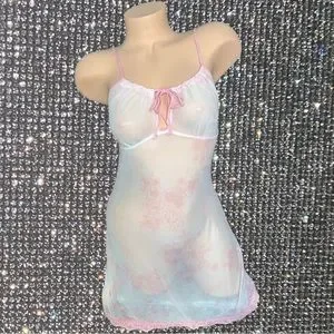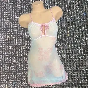 Nightgown dress mesh pink floral frilly lace bottom tie up milkmaid y2k 90s. Size small but stretchy. So cute milkmaid style dress ๐คฉ