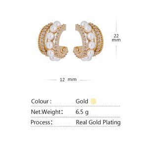 NEW 18K Gold Plated Pearl Diamond Hoop Earrings
