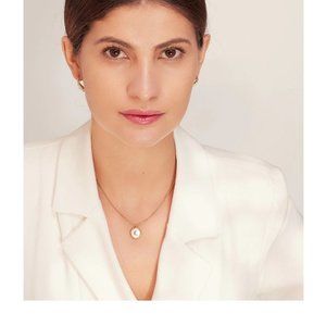 New 18K Gold Plated White Shell Moon Round Pendant Necklace