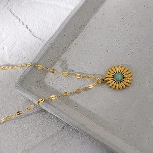 New 18K Gold Plated Sunflower Natural Stone Necklace