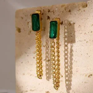 New 18K Gold Plated Green Crystal Chain Earrings