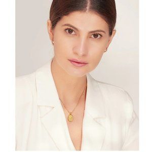 New 18K Gold Plated Oval Sunflower Pendant Necklace