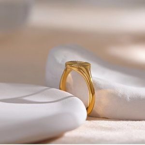 ^NEW 18K Gold Plated Round Textured Signet Coin Ring