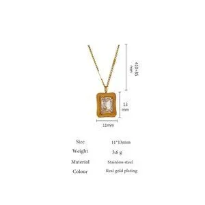 ^NEW 18K Gold Plated Emerald Cut Diamond Square Pendant Necklace