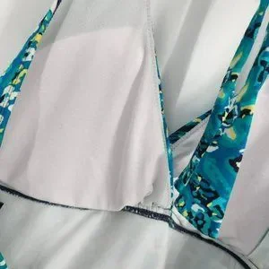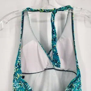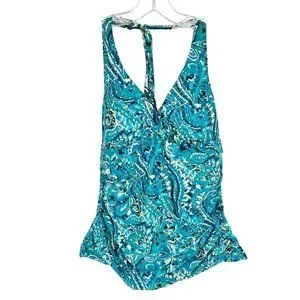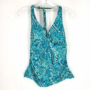 Chaps 12 Blue Green Yellow Abstract Paisley Neck Tie Padded Tankini Swimsuit Top