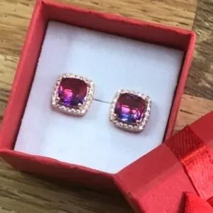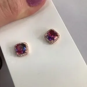 Pink & blue watermelon tourmaline princess cut earrings. Rose gold plated. Just Gorgeous! Comes in gift box.