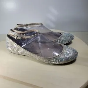 Betsey Johnson Joy Champagne Rhinestone Ballet Flats Womens Size 7.5