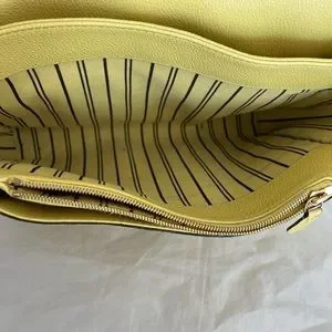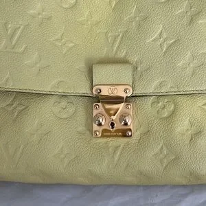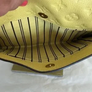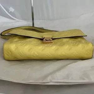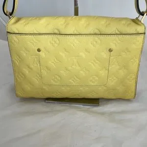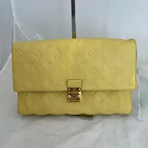 Authentic, LIMITED EDITION, Louis Vuitton Monogram Empriente Fascinante handbag. This piece is extremely versatile. The strap can be doubled up to wear on the shoulder; it can also be extended to wear as a crossbody, and it can be removed entirely, by the two turn locks on either end, to make it a clutch. Done in a beautiful Citrine colorway and adorned with LV's Empriente patterned leather, which is soft and supple. Highlighted with all golden hardware, including the iconic S-lock which is free of scratches. The leather itself is free of defects as is the strap. May have light wear around the inside edges, but very minor. The lining is a yellow striped canvas, which has minor marks, looks like kohl eyeliner. I gave the lining a good cleaning before listing. This bag is adorned with many pockets and compartments: Three interior compartments, 1 inside zip wall pocket, and 1 outside back pocket. France. TR0124. Guaranteed authentic. Includes Louis Vuitton dust bag, not shown.