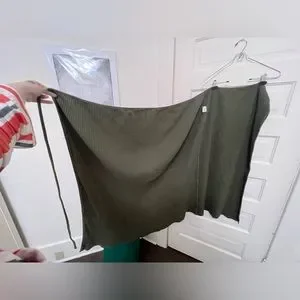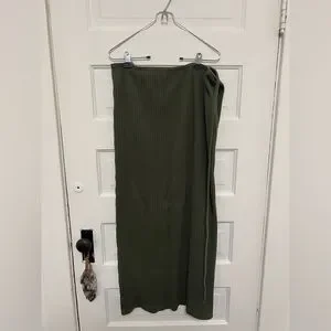 versatile wrap skirt from Baserange, size large, i am usually a medium but this works great for me, it can be wrapped to reveal leg or conceal, nice quality organic cotton made to last and good for fall/spring/summer, layer it for winter. flattering on all bodies, unisex, asymmetrical, basic with a flair