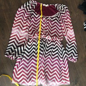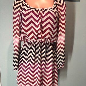 Accidentally In Love Chevron Scoop Neck Long Sleeve Blouson Dress Size Medium