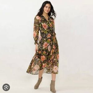 LC by Lauren Conrad Floral Maxi Wrap Dress with Metallic Details New With Tags