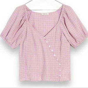 LAST DAY Madewell Purple Plaid Buttons Puff Sleeve Linen Blend Top NWT Size 2X