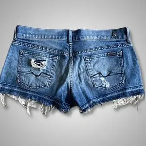 { 7 For All Mankind } - Distressed Lace Pocket Jeans Shorts