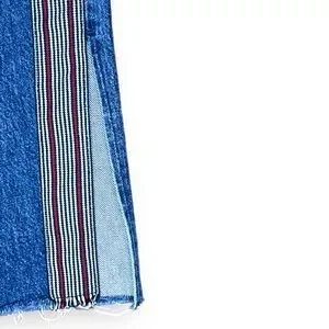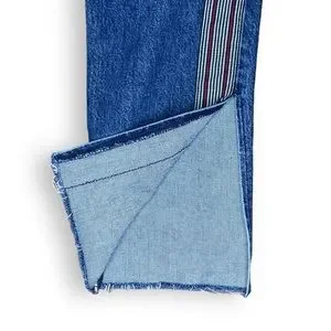 Cropped jeans with red, white, black stripes and slits. Super stylish. Super cute!