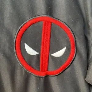 Awesome Deadpool varsity jacket there is a stain on the 91 on the left sleeve Perfect besides size s