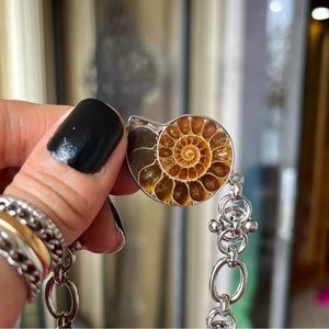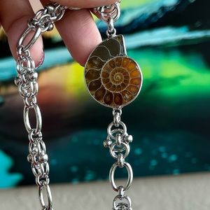Made to order . Genuine ammonite fossil shell stainless steel maille choker