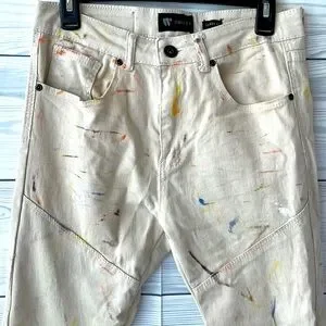 Like New! Worn once. Bone color skinny jeans with colorful paint splatters. Size 30 waist 30 inseam