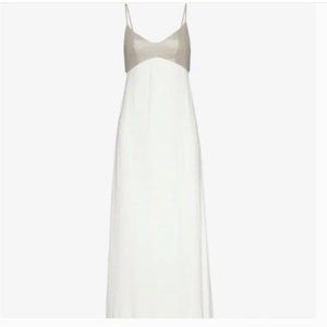 L'AGENCE OFF WHITE SILK WITH SILVER TOP MAXI DRESS
