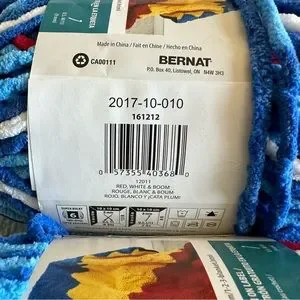 Lot of Two Skeins of Bernat Blanket Yarn in Red, White, and Boom Colorway