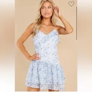 Red dress brand Storia Blue and white floral print mini dress size medium