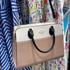 Kate Spade Madison Colorblock Saffiano Leather Medium Satchel Tstd Hazelnut NWT