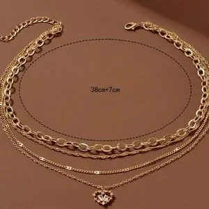 Heart Charm Layered Necklace Copper Jewelry - Zirconia Stones - One hook for all