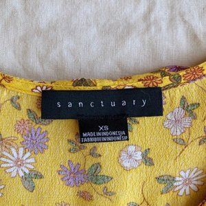 Sanctuary yellow floral print ruffle long sleeve v neck cropped wrap blouse