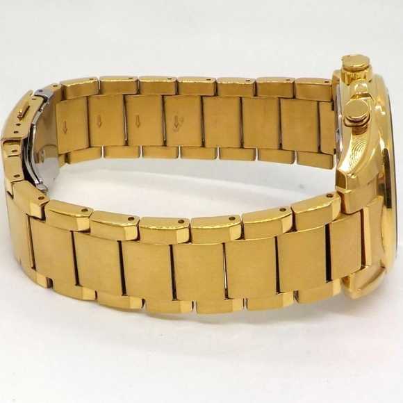 - Brushed-Polished Gold Tone PVD Stainless Steel Case & Bracelet