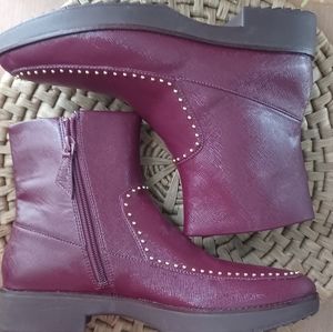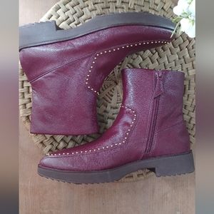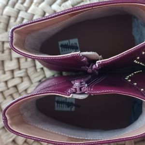 fitflop nwot lingoberry kinbey burgundy & gold studded ankke boots