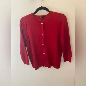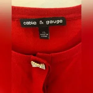 Red cardigan featuring shiny jeweled button bows from Cable & Gauge. Size XL. Great condition!!
